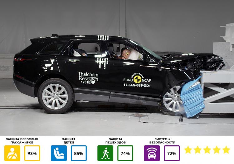 Range Rover Velar avtomobili kraş-testdən keçib. Model mümkün 5 ulduzdan hamısını qazana bilib. Velar sərnişinlərin müdafiəsinə görə maksimal nəticənin 93 faizini əldə edib. Sürücünün sinə müdaifəsi yüksək qiymətləndirilsə də, arxada oturan sərnişində müdafiə zəifdir. Eyni zamanda, arxa tərəfdən güclü zərbə olarsa, ikinci cərgədəki sərnişinlərin boyundan zədə almaq ehtimalı çoxdir. Krossoverlər arasında ən yüksək göstərici Alfa Romeo Stelvio-ya məxsusdur: 97 faiz. Piyadaların müdafiəsinə görə isə Velar 74 faiz təhlükəsiz maşın kimi dəyərləndirilib. 10 yaşlı uşağı təqlid edən manekenlə yoxlamalar zamanı da Range Rover Velar az qiymət alıb.