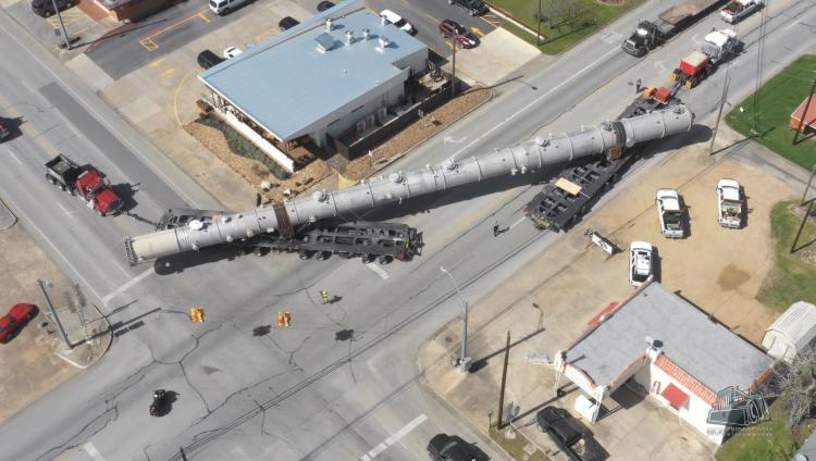 Big Rig Videos adlı YouTube kanalında böyük bir kolonun yük daşıma görüntüləri yayılıb. Konstruksiyanın uzunluğu 90 metrdən çoxdur və 183 ton çəkidədir. Onun danşınması üçün iki iri yük maşınından və dönən təkərləri olan platformadan istifadə olunub. Kolonlu demetanizasiya qaz emalı zavodları üçün əhəmiyyətli elementlərdən sayılır.