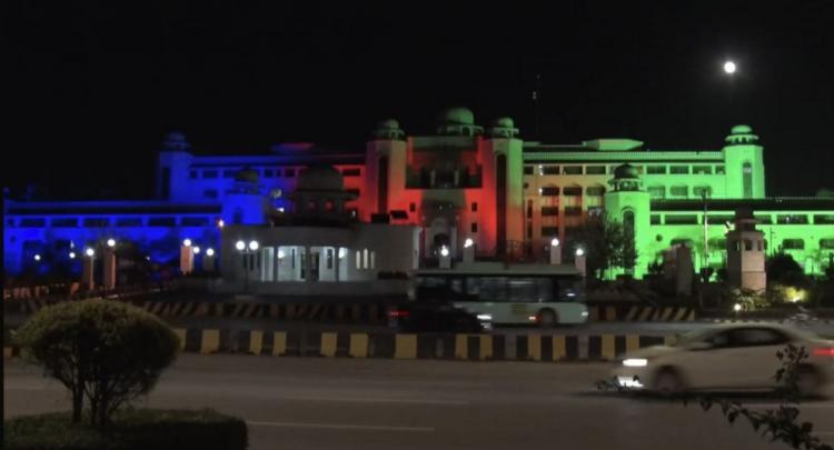 Pakistanda binalar Azərbaycan bayrağının rəngləri ilə işıqlandırılıb