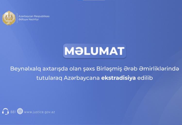 Ədliyyə Nazirliyi beynəlxalq axtarışda olan şəxslərin ölkəyə gətirilməsi üzrə əməkdaşlığı davam etdirir. Nazirliyin məlumatına görə, fevralın 20-də İnterpol xətti ilə axtarılan daha bir şəxs Azərbaycana ekstradisiya olunub.Xüsusilə külli miqdarda zərgərlik məmulatlarının qaçaqmalçılığında ittiham edilən Azərbaycan vətəndaşı Tural Səməd-zadənin yeri Birləşmiş Ərəb Əmirliklərində müəyyən edilib və o, həbs olunub. Tələb olunan sənədlər təqdim edildikdən sonra ekstradisiya razılaşdırılıb.