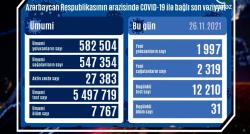 Azərbaycanda koronavirus infeksiyasına 1 997 yeni yoluxma faktı qeydə alınıb, 2 319 nəfər müalicə olunaraq sağalıb. Analiz nümunələri müsbət çıxmış...