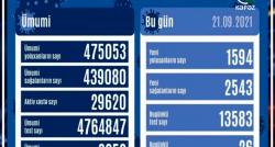 Azərbaycanda son sutkada koronavirus infeksiyasına 1 594 yeni yoluxma faktı qeydə alınıb, 2 543 nəfər müalicə olunaraq sağalıb və evə buraxılıb.COVID...