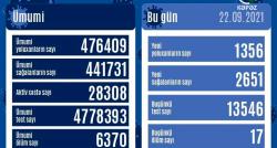 Azərbaycanda son sutkada koronavirus infeksiyasına 1356 yeni yoluxma faktı qeydə alınıb.