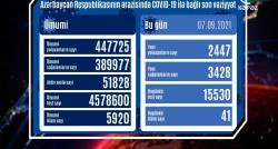 Azərbaycanda koronavirus infeksiyasına 2447 yeni yoluxma faktı qeydə alınıb, 3428 nəfər müalicə olunaraq sağalıb.COVID-19 üçün götürülən analiz...