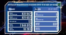 Azərbaycanda koronavirus infeksiyasına 2 yeni yoluxma faktı qeydə alınıb, 4 nəfər müalicə olunaraq sağalıb. Analiz nümunələri müsbət çıxan 1 nəfər...