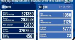 Azərbaycandda koronavirus infeksiyasına 1 058 yeni yoluxma faktı qeydə alınıb, 2 125 nəfər müalicə olunaraq sağalıb.COVID-19 üçün götürülən analiz...