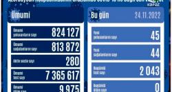 Azərbaycanda koronavirus infeksiyasına 45 yeni yoluxma faktı qeydə alınıb, 44 nəfər müalicə olunaraq sağalıb. Analiz nümunələri müsbət çıxmış şəxslər...
